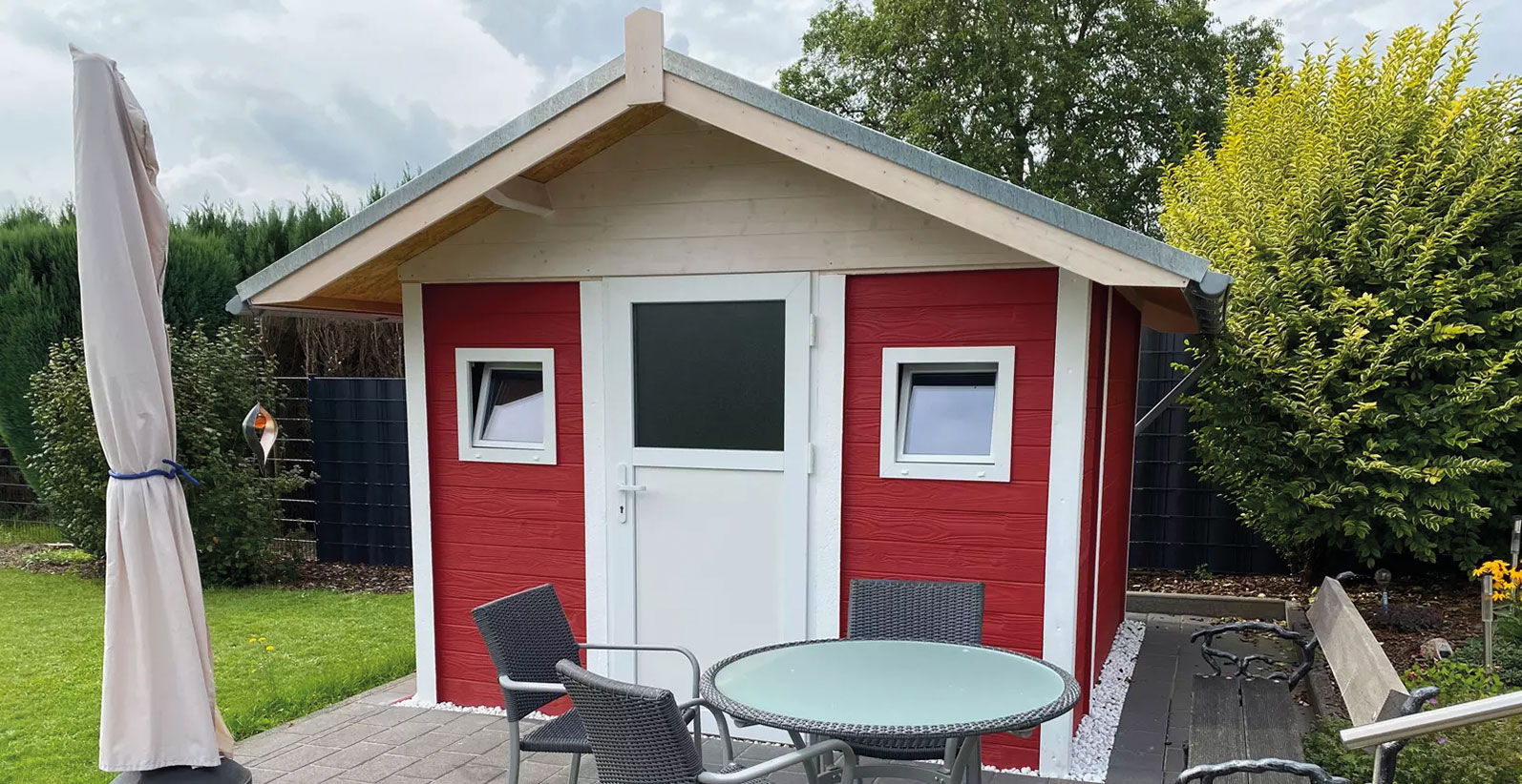 - Gartenhaus mit Motivplatte Prestige